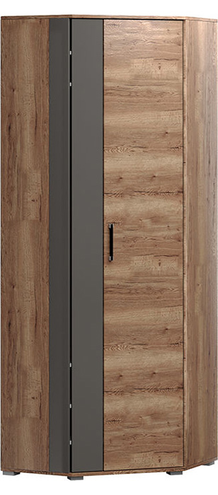 Угловой шкаф состоит из трех отдельных: одностворчатого, двустворчатого и углового. Три двери зеркальные, а одна — глухая. В комплект к корпусам идут ручки, карниз и 4 штанги для одежды. Продуманное наполнение шкафов поможет компактно и удобно расположить одежду.